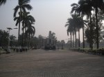 Although there were overall more folks present at this march, the route did not pass any shopping or transit centers, so there was less opportunity for new mobilizers to join in. Protesters walked along concrete pillars that had gone up years ago as the start of a monorail, pillars that had cost millions of dollars but since the public transit project was never completed, they simply served as a reminder of government waste. Despite the lethargic start to the day, people were far more spirited as they neared the Government House.
